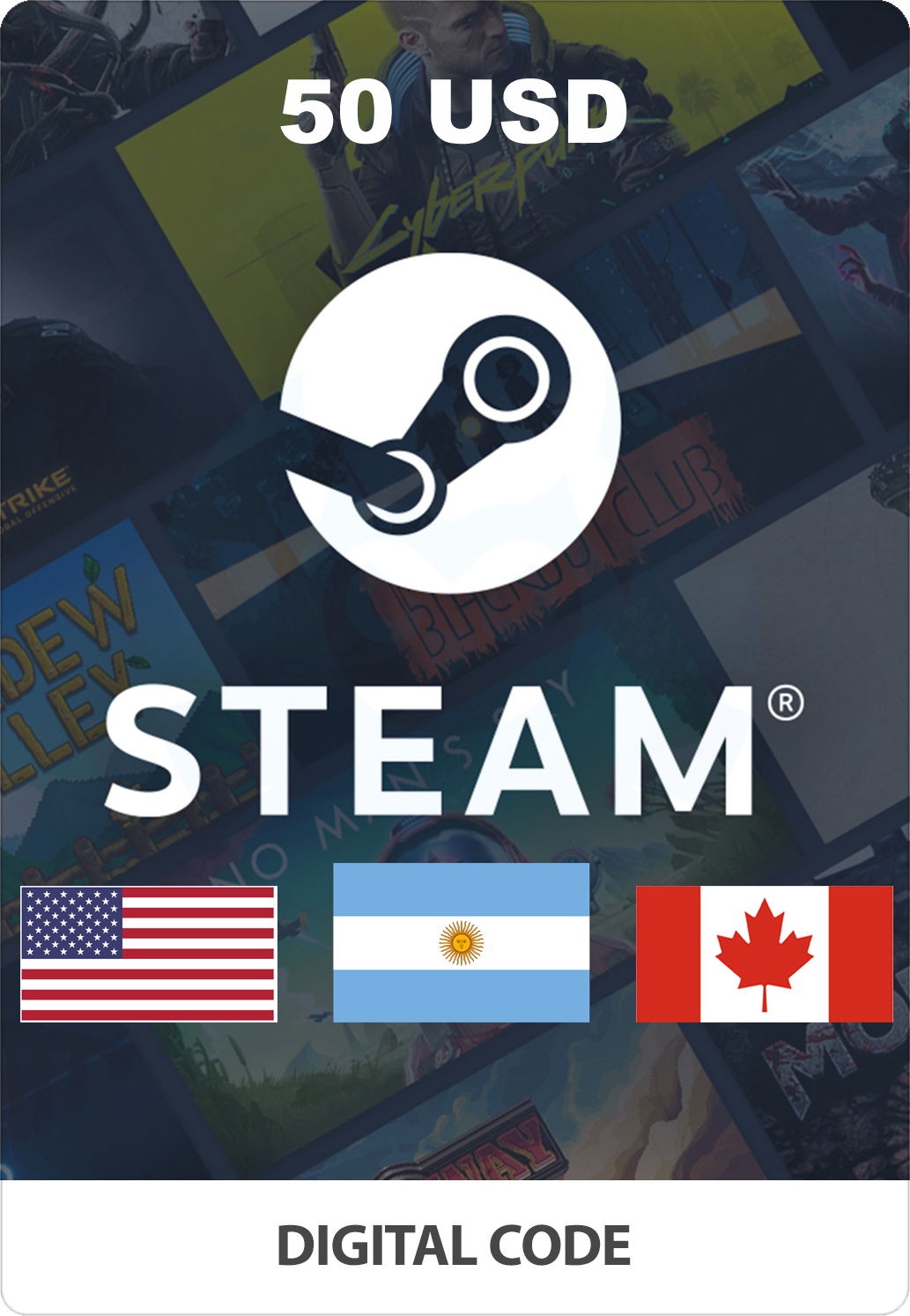 Tarjeta de regalo Steam - 50 Dólares - EE-UU - Canada - Argentina